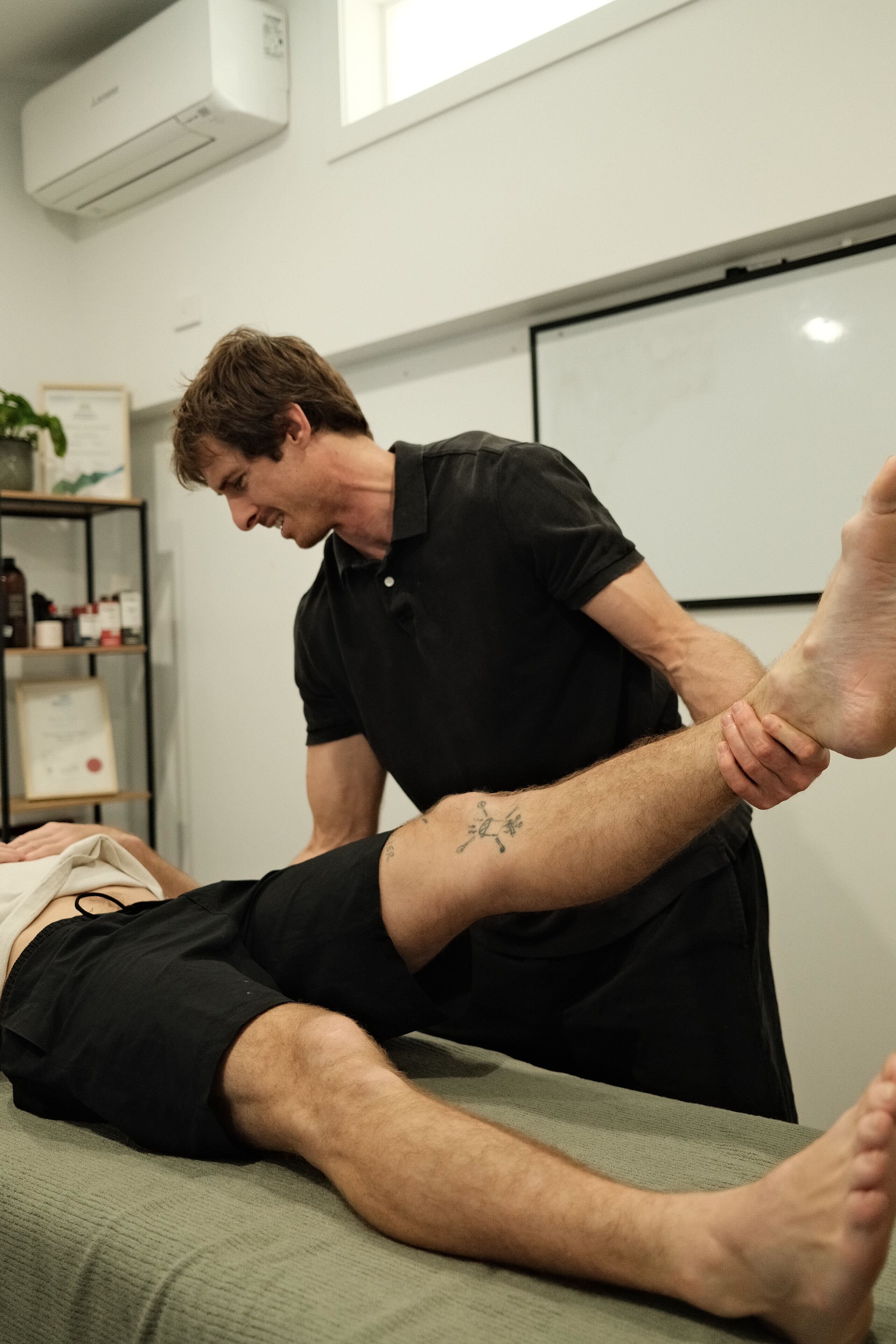 Tom blends evidence-based remedial massage techniques—such as myofascial release, deep tissue therapy, trigger point therapy, MET, cupping, and dry needling—with principles from the CHEK Institute and DNS (Dynamic Neuromuscular Stabilisation). This integrated method supports clients with injury recovery, chronic pain, stress, and overall wellbeing, with a strong focus on posture, movement quality, and foundational health factors like breathing, sleep, hydration, and mindset.